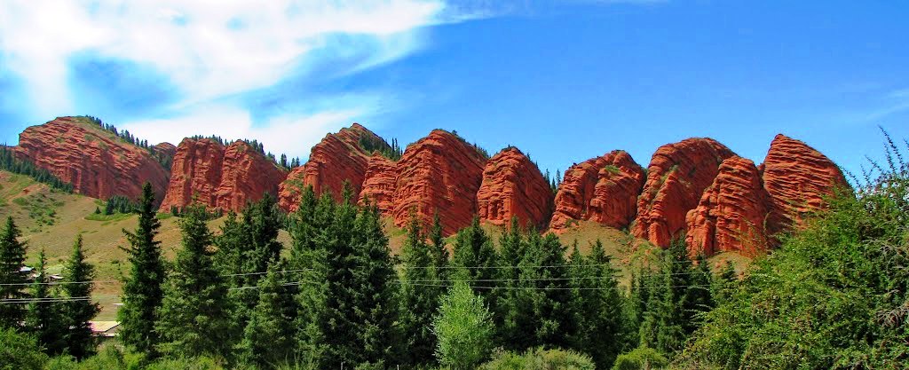 Depart from Karakol on the way pull off the road to look “Broken heart” and “Seven bull” rocks formations, which offer breathtaking photo opportunities. After visiting Jeti-Oguz, head towards the Barskoon Valley. Hike to the Barskoon Waterfall, a picturesque and easily accessible natural wonder. Enjoy the serene mountain landscapes and night here in a cottage or in yurt camp